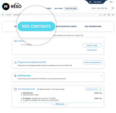 depuis votre espace personnel, l'onglet "vos contrats" met à votre disposition, au format PDF, vos justificatifs de rechargement sur carte Oùra.